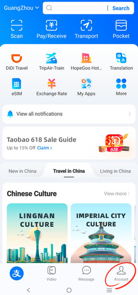 Cez Alipay si dokonca môžeš objednať aj taxi! Funguje na rovnakom princípe ako Uber/Bolt u nás. Na domovskej stránke klikni na DiDi Travel a do vyhľadávania stačí napísať konkrétnu adresu alebo vybrať bod z mapy.