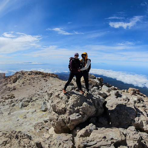 O rok neskôr to už vyšlo, povolenie sme mali, treba si zobrať aj občiansky preukaz, ktorý tiež kontrolovali. Ku kontrole sme prišli o hodinu skôr, než sme mali rezervovaný čas, ale aspoň to už nebol problém a hore nás ihneď pustili. Posledné metre sme už cítili nadmorskú výšku, mňa bolela hlava a Martin už mlel z posledného. Ale tie výhľady z úplného vrcholu nás ihneď vyliečili! Bol krásny slnečný deň, len slabý vietor a vďaka obmedzenému počtu povolení sa nám na streche Španielska podarilo byť asi 10 minút úplne osamote.